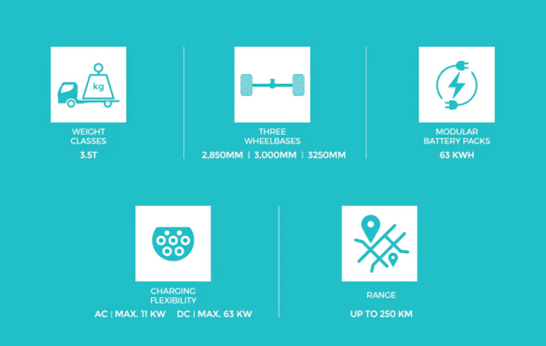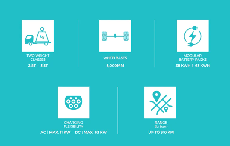 The EV that have both comfortable and cargo space with up to 3700MM in length. Advanced chassis design for seamless superstructure integration and a multitude of other operations while maintaining rigorous safety standards. Download our brochure.